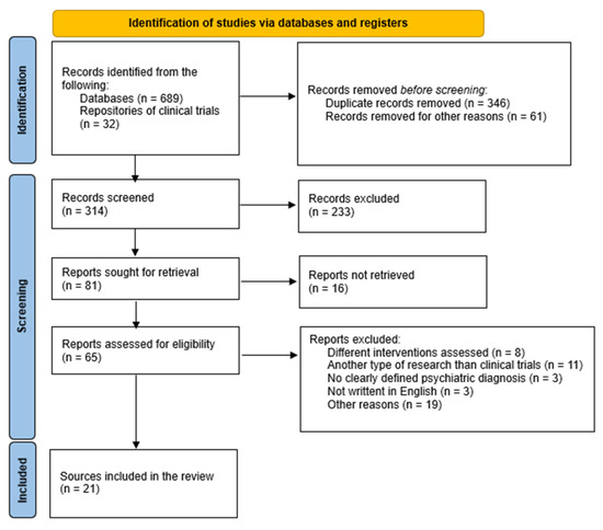 - Vasiliu, O.; Vasile, D.; Voicu, V. Efficacy and tolerability of antibiotic augmentation in schizophrenia spectrum disorders—A systematic literature review. Rom. J. Mil. Med. 2020, 123, 3–20. [Google Scholar] [CrossRef]