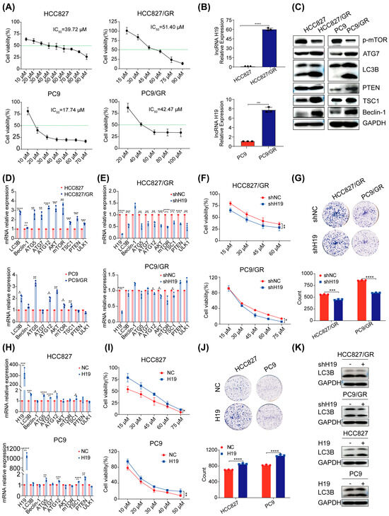 2.1. Gefitinib Resistance Linked to Dysregulated Autophagy and Elevated lncRNA H19 Levels