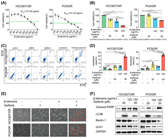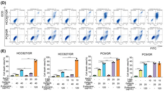 2.2. Synergistic Effects of β-Elemene and Gefitinib on Apoptosis in Drug-Resistant Cells
