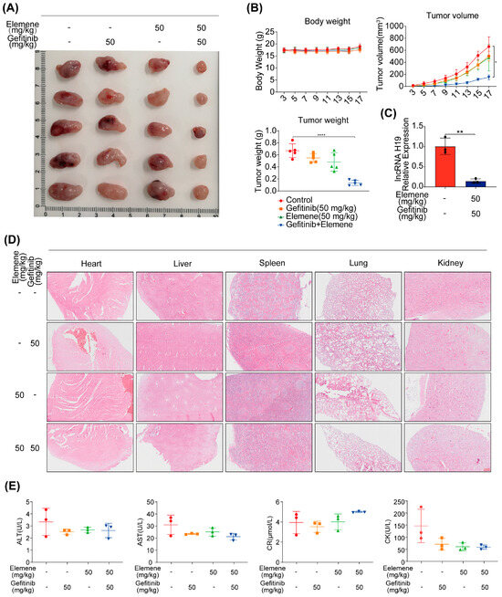 2.3. Synergistic Antitumor Activity of β-Elemene and Gefitinib in Lung Cancer Models In Vivo