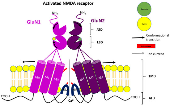 - Wu, E.; Zhang, J.; Zhang, J.; Zhu, S. Structural Insights into Gating Mechanism and Allosteric Regulation of NMDA Receptors. Curr. Opin. Neurobiol. 2023, 83, 102806. [Google Scholar] [CrossRef] [PubMed]