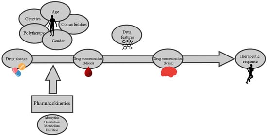 In the field of neuropsychopharmacology, TDM in mental health treatments represents an important topic within the scope of treatment individualization, minimizing adverse drug reactions (ADRs) and maximizing drug efficacy [5]. Moreover, treatment adherence can be monitored, thus reinforcing patient–clinician dialogue in a shared decision-making approach. The role of TDM is of particular importance when considering pharmacokinetic variables (Figure 2). The importance of TDM in patients with psychiatric disorders has been underlined for decades, with different studies reporting not only its efficacy for specific medications, but also its cost-effectiveness [9,10,11]. In the real-world clinical practice, however, the implementation of regular TDM is not always possible. For example, research conducted by Al Mutarid and colleagues found that although the practice of TDM was well known among doctors in Saudi Arabia, its actual use was poorly applicated, especially in smaller hospitals, mainly because of lack of resources [12]. Another study, conducted in Turkey by Eryılmaz and colleagues, found a positive approach in the frequency of TDM use among Turkish clinicians for mood stabilizers, with 98.4% of clinicians declaring regular use of TDM, especially for lithium and valproate, but with significantly lower rates of monitoring for other classes of psychotropic medications [13]. A survey conducted in China among psychiatric facilities by Guo and colleagues found that even when TDM was used to monitor the patients’ drug levels, in most cases, this was not followed with recommendations on dose adjustment, underlining the fact that sometimes there could be a lack of communication between clinicians and laboratory professionals [14]. These findings show that there is still room for improvement in the implementation of TDM in clinical practice in different settings around the world, and that there is a compelling need for information about correct TDM practices among health-care professionals. Drug monitoring also represents a way to minimize adverse events in patients taking psychiatric medications because it helps the clinician during the titration phase and follow-up, especially with drugs such as clozapine, which can be associated with potentially serious adverse events [15,16].