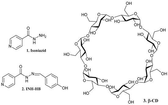 Structure of isoniazid (1), INH-HB (2), and β-CD (3) [16,17,18].