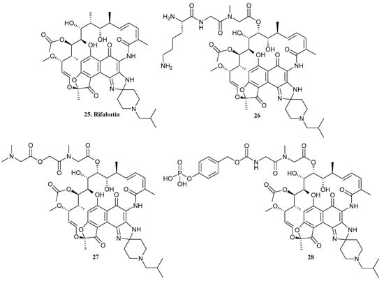 Structure of rifabutin (25) and rifabutin-based prodrugs 26–28 [31].
