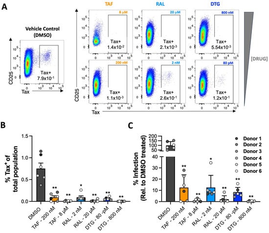 2.4. TAF-, RAL- and DTG-Treated Primary CD4+ T Cells Resist HTLV-1 Infection