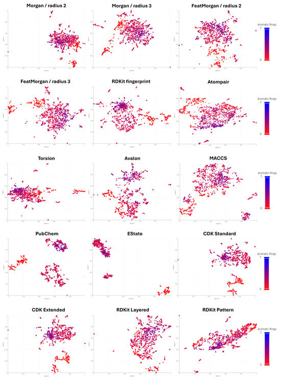 - Boldini, D.; Ballabio, D.; Consonni, V.; Todeschini, R.; Grisoni, F.; Sieber, S.A. Effectiveness of Molecular Fingerprints for Exploring the Chemical Space of Natural Products. J. Cheminform. 2024, 16, 35. [Google Scholar] [CrossRef] [PubMed]