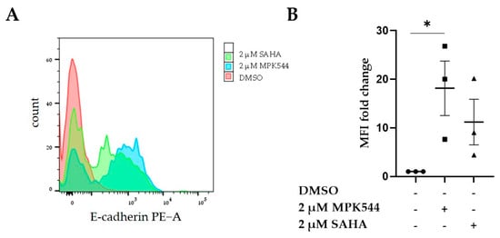 - Park, S.J.; Kim, S.-M.; Moon, J.-H.; Kim, J.H.; Shin, J.-S.; Hong, S.-W.; Shin, Y.J.; Lee, D.-H.; Lee, E.Y.; Hwang, I.-Y.; et al. SAHA, an HDAC inhibitor, overcomes erlotinib resistance in human pancreatic cancer cells by modulating E-cadherin. Tumour Biol. 2016, 37, 4323–4330. [Google Scholar] [CrossRef]