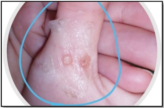 - Viennet, C.; Gheit, T.; Muret, P.; Aubin, F.; Cabou, J.; Marchal, A.; Tommasino, M.; Humbert, P.J.C.; Dermatology, E. Assessment of the efficacy of a new formulation for plantar wart mummification: New experimental design and human papillomavirus identification. Clin. Exp. Dermatol. 2013, 38, 85–88. [Google Scholar] [CrossRef]