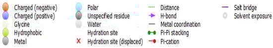 Receptor grid was established in Maestro with grid parameters by selecting an atom in the original ligand. The grid size was set at 20 Å. Van der Waals radius scaling was adjusted to 1 to mitigate nonpolar receptor regions, and a partial charge of 0.25 was applied. All ligands were subjected to docking with the target protein using the standard precision (SP) algorithm. Identifying the best-bound ligands at the active site was based on the most negative docking score [].