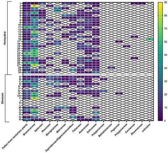 - Tomás-Barberán, F.; Martos, I.; Ferreres, F.; Radovic, B.; Anklam, E. HPLC Flavonoid Profile as Markers for the Botanical Origin of European Honey. J. Sci. Food Agric. 2001, 81, 485–496. [Google Scholar] [CrossRef]