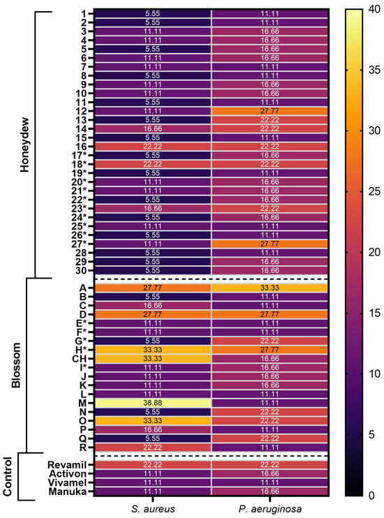 4.6. In Vitro Antimicrobial Testing of Honey Samples