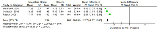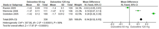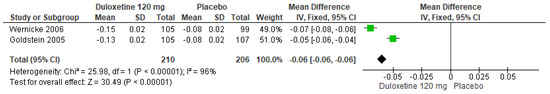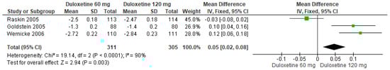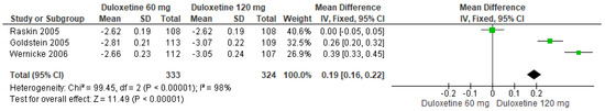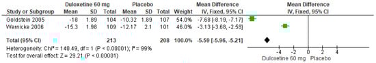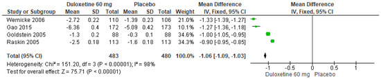 - Crucitti, A.; Zhang, Q.; Nilsson, M.; Brecht, S.; Yang, C.R.; Wernicke, J. Duloxetine treatment and glycemic controls in patients with diagnoses other than diabetic peripheral neuropathic pain: A meta-analysis. Curr. Med. Res. Opin. 2010, 26, 2579–2588. [Google Scholar] [CrossRef] [PubMed]