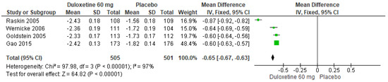 - Jiang, L.; Xiong, Y.; Cui, J. Comparison of the Efficacy and Safety of Duloxetine and Gabapentin in Diabetic Peripheral Neuropathic Pain: A Meta-Analysis. Contrast. Media Mol. Imaging. 2022, 2022, 4084420. [Google Scholar] [CrossRef] [PubMed] [PubMed Central]