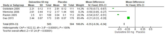 - Moore, R.A.; Cai, N.; Skljarevski, V.; Tölle, T.R. Duloxetine use in chronic painful conditions--individual patient data responder analysis. Eur. J. Pain 2014, 18, 67–75. [Google Scholar] [CrossRef] [PubMed] [PubMed Central]