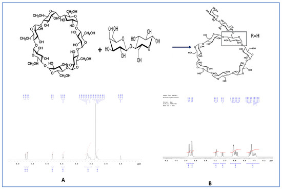 NMR spectrum of (A) β-cyclodextrin and (B) lactose-appended β-cyclodextrin.