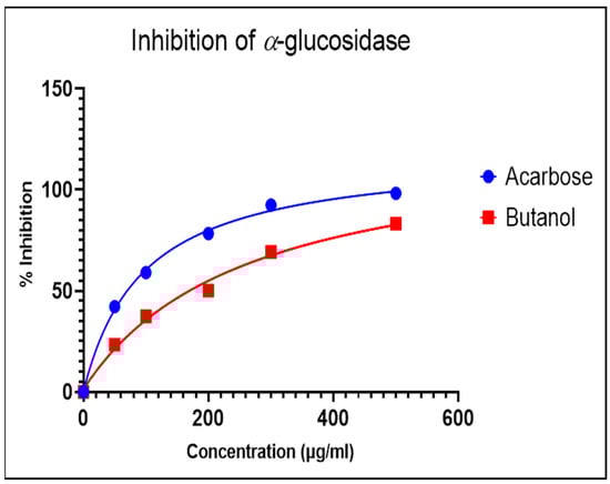 Dose-dependent response curve of the n-butanol fraction and Acarbose.