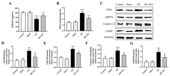 2.3. SYI Attenuated I/R-Induced Oxidative and ER Stress in Rat Hearts