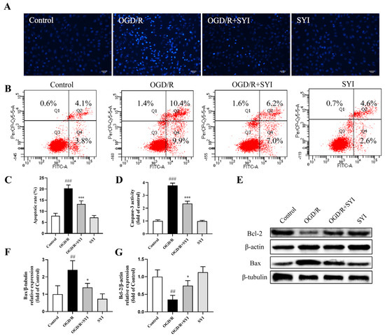 2.5. SYI Suppressed OGD/R-Induced Apoptosis in H9c2 Cells
