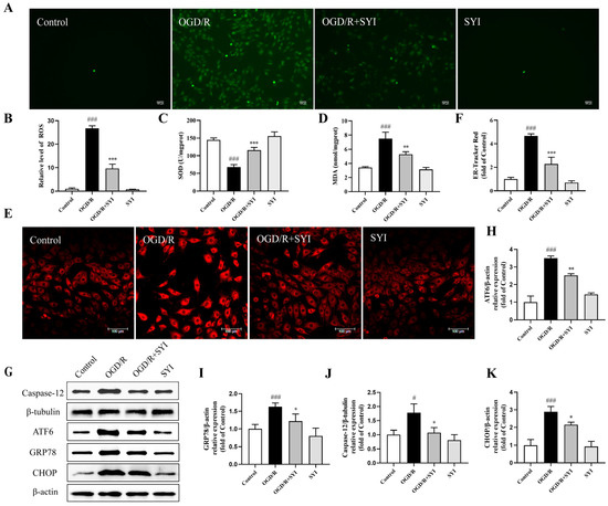 2.6. SYI Attenuated OGD/R-Induced Oxidative and ER Stress in H9c2 Cells