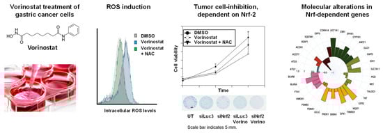 The role of oxidative stress and a possible modulation of the Nrf2 system by HDACi in gastric cancer is still poorly understood. For this reason, the present study tested if and to what extent HDACi treatment affects oxidative stress in gastric cancer cells and whether antioxidant treatment reduces tumor-inhibitory activity of HDACi. On the molecular level, this included effects of HDACi on Nrf2 and the expression of Nrf2-dependent genes.