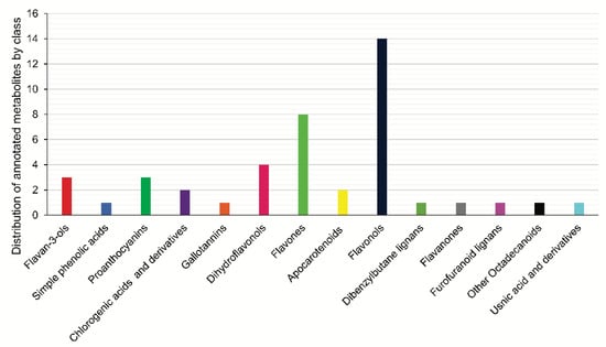 Analysis of the distribution of the annotated substances shows a clear predominance of flavonoids followed by proanthocyanins and chlorogenic acids and their derivatives.