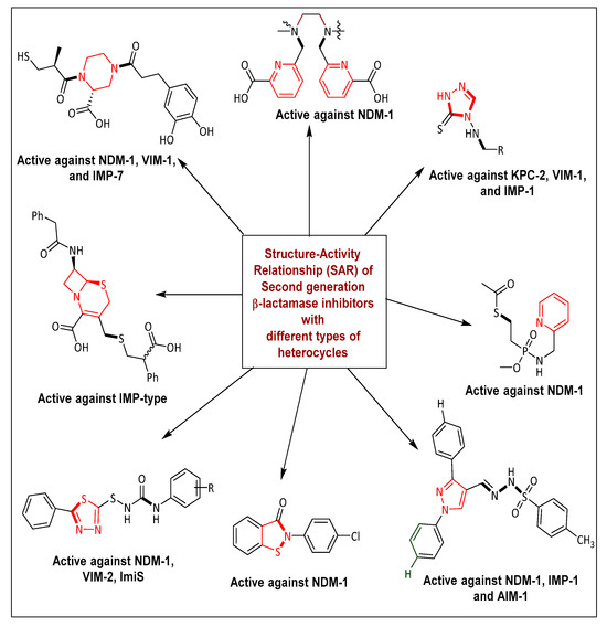 For the past 80 years, millions of individuals have been treated for bacterial infections with antibiotics of β-lactam [29]. Antibiotic resistance, however, is encouraged worldwide toward the overuse or unnecessary use of antibiotics. Approximately 65% of the global antibiotic market is made up of antibiotics of β-lactam, which consist of penicillin, monobactams, carbapenems, and cephalosporins [30,31]. Unfortunately, the β-lactamase enzyme’s growth in Gram-negative bacteria and an effective mechanism of antibiotic resistance to β-lactams are formed by the hydrolysis of these β-lactam rings. Since the introduction of clavulanic acid and amoxicillin in 1981, combining an inhibitor of β-lactamase (BLI) with β-lactams has been demonstrated to be an effective method to treat this sort of resistance [14]. Class A β-lactamases were effectively treated with this combination therapy; but, because of the development of novel and mutant β-lactamases [32,33], which clavulanic acid was unable to inhibit, its effectiveness was compromised. Thus, the discovery of sulbactam and tazobactam [34] as inhibitors of class A, class C, and certain class D β-lactamases prompted a search for new inhibitors [35]. Because of growing resistance because of bacteria producing extended-spectrum β-lactamases, other well-known BLIs, like tazobactam and sulbactam, are no longer clinically effective [36]. Hence, the need for developing next-generation BLIs to combat resistant types of pathogenic bacteria has increased [15,16]. The new second-generation class of inhibitors of non-β-lactam beta-lactamase is divided into diazabicyclooctane (DBO), bicyclic boronic acid, metallo-, and dual-nature-based β-lactamase inhibitors.