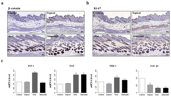 - Son, M.J.; Jeong, J.K.; Kwon, Y.; Ryu, J.-S.; Mun, S.J.; Kim, H.J.; Kim, S.-w.; Yoo, S.; Kook, J.; Lee, H.; et al. A novel and safe small molecule enhances hair follicle regeneration by facilitating metabolic reprogramming. Exp. Mol. Med. 2018, 50, 1–15. [Google Scholar] [CrossRef]