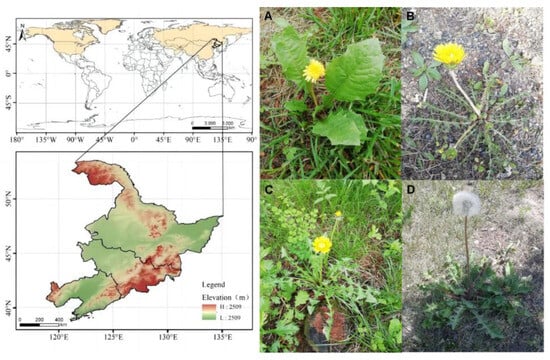 The original plant of Taraxaci herba belongs to the genus Taraxacum, which mainly grows in temperate and subtropical regions of the northern hemisphere. In China, Taraxacum plants are widely distributed in the northeast, north, northwest, central, east, and southwest provinces [1,2]. Taraxacum plants contain Taraxasterol, stigmasterol, sitosterol, choline, organic acids, and inulin, so they have very high medicinal and nutritional values [12,13].