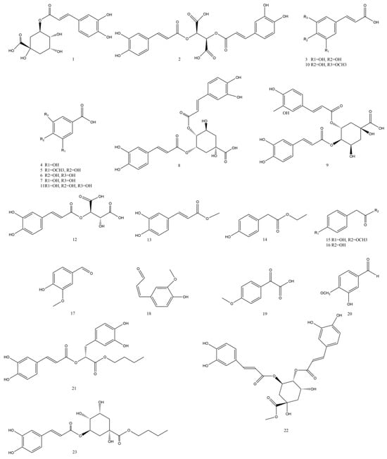Currently, the phenolic acids isolated and identified from Taraxaci herba are presented in Table 5 and Figure 4.
