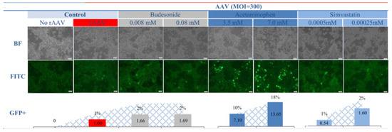 The primary objective of the present study is to evaluate the efficiency of rAAV transduction in the presence of commonly used medications. In the context of the increasing availability of gene therapy products based on rAAV vectors, a significant aspect of this research is to assess whether drugs such as acetaminophen, budesonide, and simvastatin increase rAAV transduction efficiency.