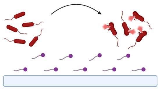 - Stillger, L.; Müller, D. Peptide-coating combating antimicrobial contaminations: A review of covalent immobilization strategies for industrial applications. J. Mater. Sci. 2022, 57, 10863–10885. [Google Scholar] [CrossRef]
