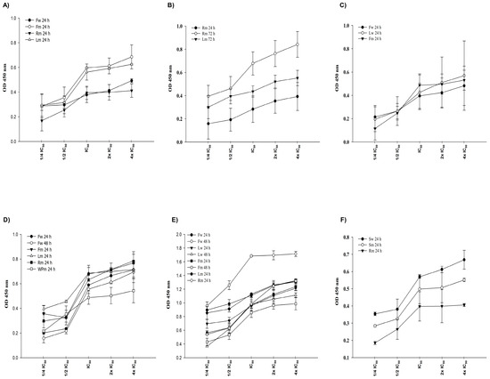In order to determine the minimum inhibitory concentration (MIC) values of the extracts, a broth microdilution method was employed [78]. Extracts were dissolved in Mueller Hinton Broth (MHB, Merck KGaA) at a concentration of 16.384 μg/mL. Subsequently, a series of serial dilutions of the extract were prepared in a 96-well microtiter plate, with concentrations ranging from 1 to 8192 μg/mL. The suspension of bacterial strains in cation-adjusted MHB was prepared at a final density of 5 × 10⁵ cfu/mL, and the selected bacterial strain was inoculated into each well. Each microdilution plate was prepared to comprise a growth control (MHB+bacteria) and a sterility control (MHB only). The microdilution plates were incubated at 35 ± 2 °C for 18–24 h. The MIC values were obtained by comparing the bacterial growth density in the wells containing antibiotics with that in the control wells used in each test set. Each experiment was set up in quadruplicate.