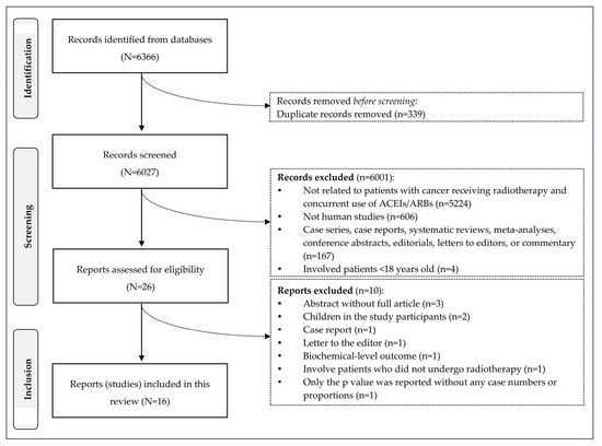 Patients who received an oral dose of ACEIs or ARBs, alone or combined with other medications, during radiotherapy treatment were included. Patients not concurrently using or those receiving intravenous therapy of ACEIs or ARBs were excluded.