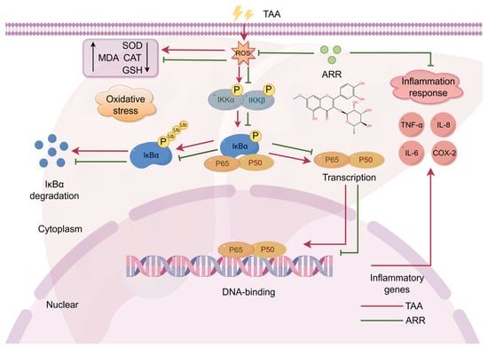 Mechanism of TAA-induced activation of IKKβ/NF-κB signaling pathway inhibition by ARR.