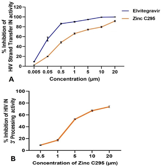 In this study, the authors investigated the inhibitory potential of Zinc C295, a novel compound, on the HIV-1 integrase enzyme. Zinc C295 effectively inhibited both 3′P and ST reactions of IN, demonstrating significant promise as a dual-target inhibitor (refer to Figure 5).