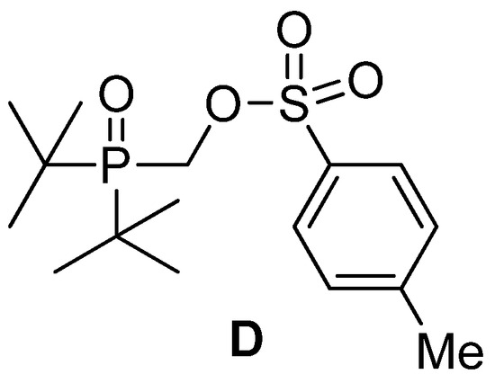 There is only one compound (D) [24] reported in the literature showing a similar structural motif (Figure 5). Compound D has tBu-substituents attached at phosphorus instead of the aryl substituents in analogue 11, and there is no further substituent at the carbon atom between the phosphorus atom and the tosyl group. The structural features of the two compounds fit well with each other.