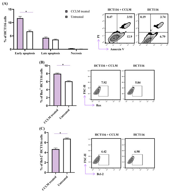2.4. CCLM Facilitates Apoptotic Cell Death in Human Colon Cancer Cells (HCT116)