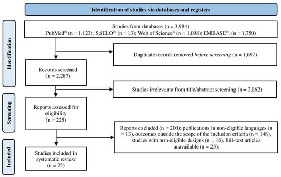 - Page, M.J.; McKenzie, J.E.; Bossuyt, P.M.; Boutron, I.; Hoffmann, T.C.; Mulrow, C.D.; Shamseer, L.; Tetzlaff, J.M.; Akl, E.A.; Brennan, S.E.; et al. The PRISMA 2020 statement: An updated guideline for reporting systematic reviews. BMJ 2021, 372, n71. [Google Scholar] [CrossRef]