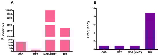 - Muriel, J.; Barrachina, J.; Del Barco, G.; Carvajal, C.; Escorial, M.; Margarit, C.; Ballester, P.; Peiró, A.M. Impact of CYP2D6 genotype on opioid use disorder deprescription: An observational prospective study in chronic pain with sex-differences. Front. Pharmacol. 2023, 14, 1200430. [Google Scholar] [CrossRef] [PubMed]