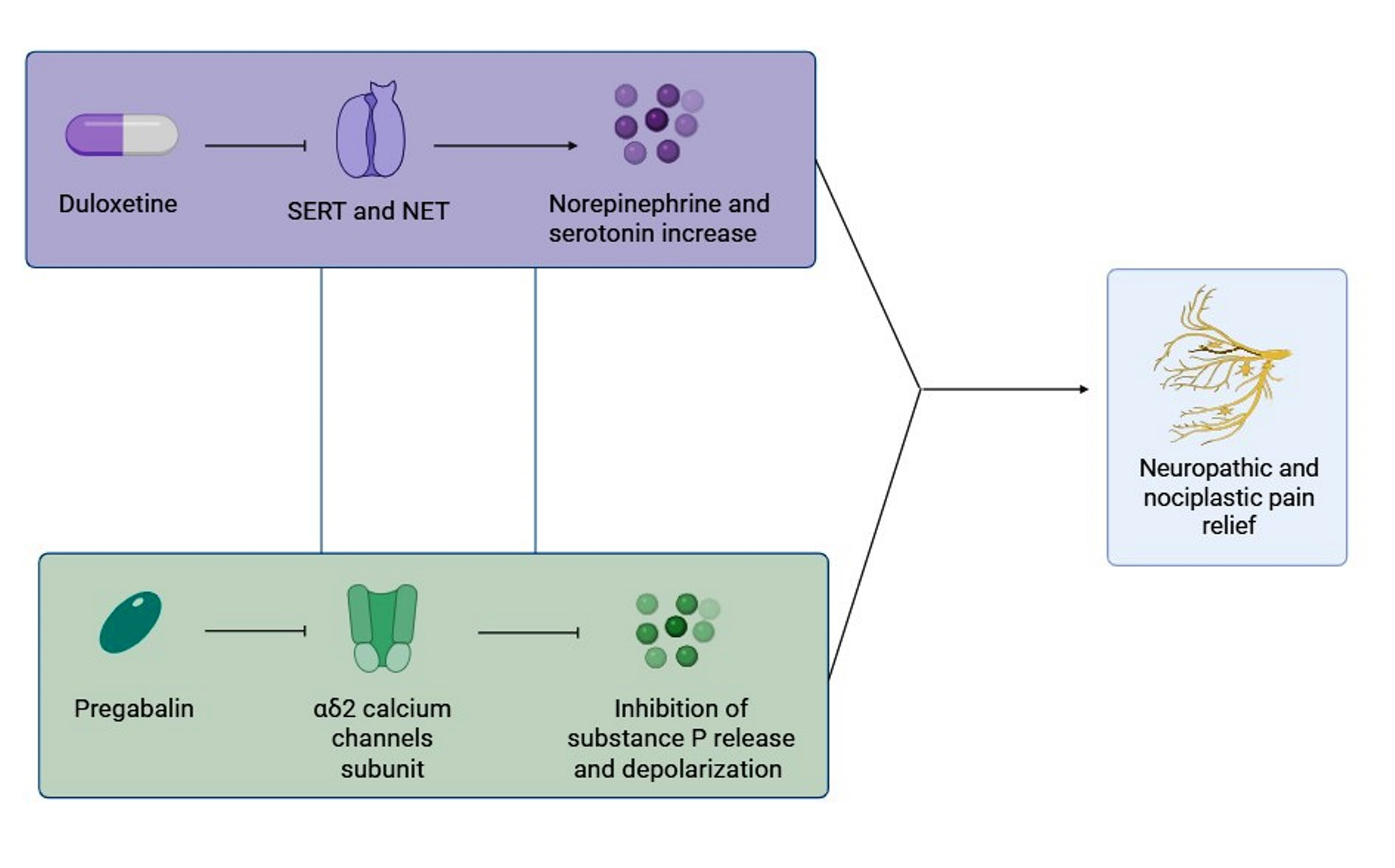 Marcianò G, Evangelista M, Vocca C, Rania V, Palleria C, Caroleo MC, Torta R, Gallelli L. Pregabalin and Duloxetine in Patients with Non-Nociceptive Pain: A Narrative Review Exploring the Pharmacological Effects of This Combination. Pharmaceuticals. 2025; 18(10):1434. https://doi.org/10.3390/ph18101434