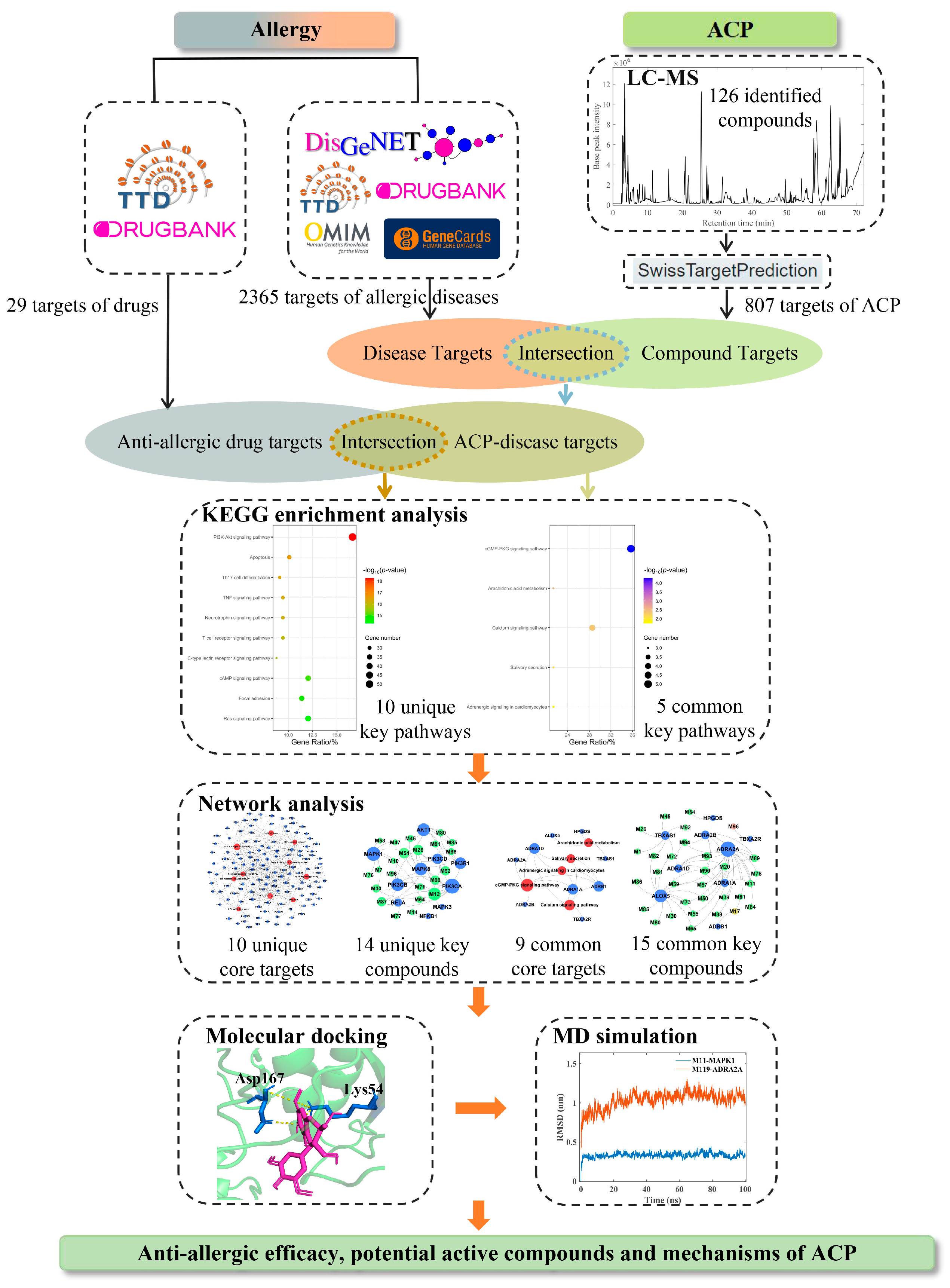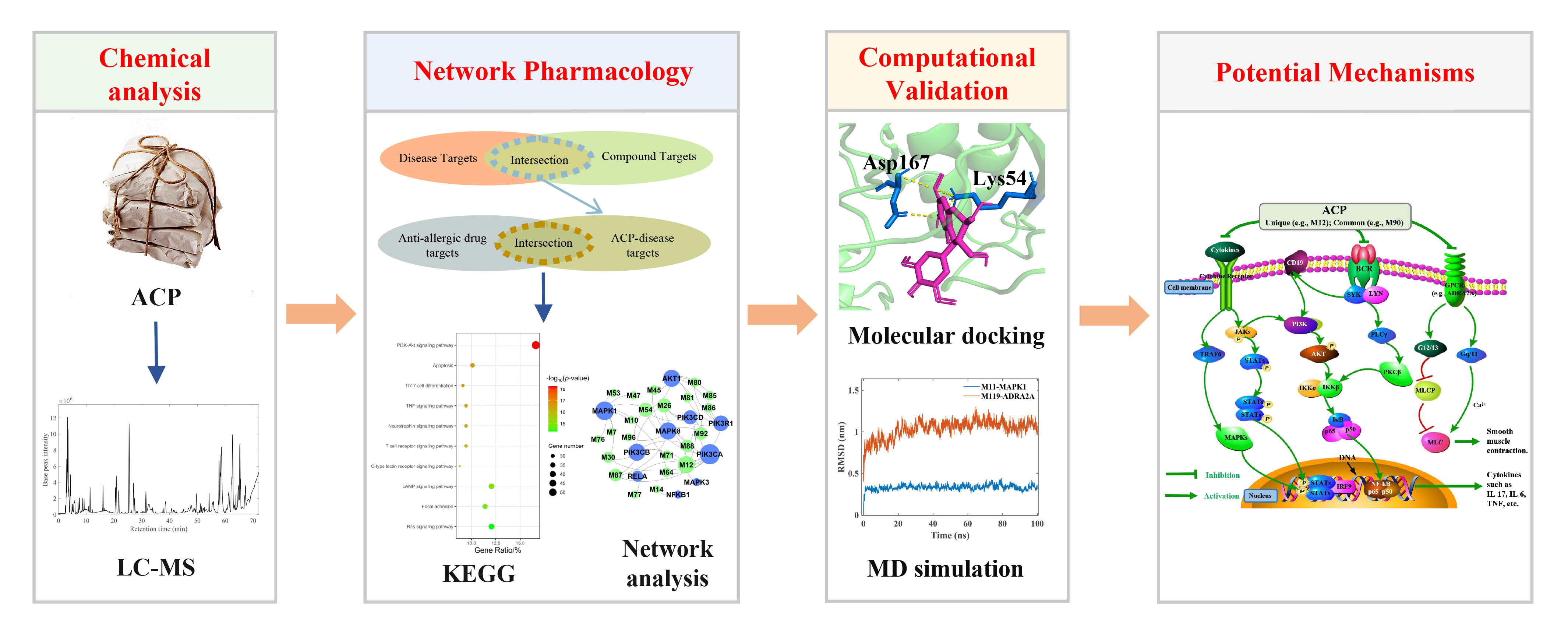 Hong, L.; Qin, Y.; Ip, C.; Xu, W.; Zeng, H.; Duan, X.; Wang, J.; Zhao, J.; Wang, Q.; Li, S. Characterization and Anti-Allergic Mechanisms of Bioactive Compounds in a Traditional Chinese Medicine Prescription Using UHPLC-Q-TOF-MS/MS, Network Pharmacology and Computational Simulations. Pharmaceuticals 2025, 18, 1444. https://doi.org/10.3390/ph18101444