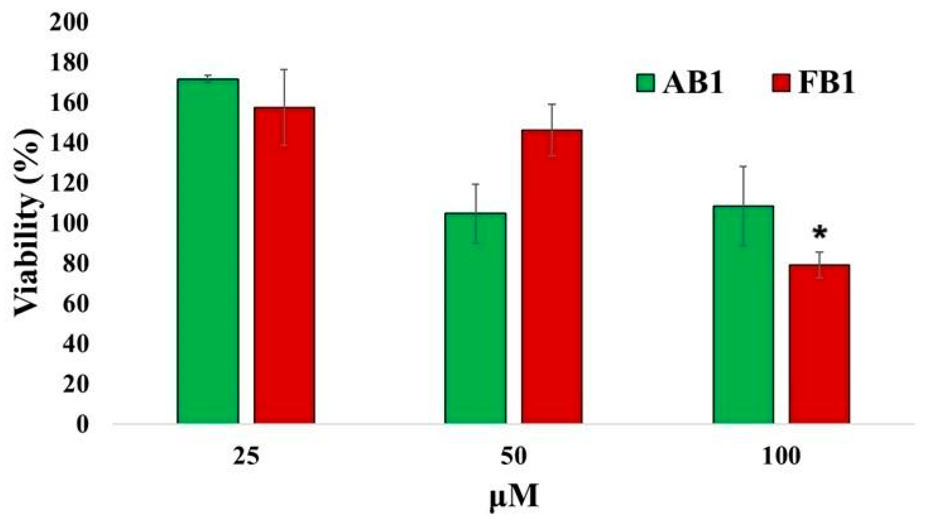 4.4. Evaluation of Toxicity in Neuronal or Glial Culture Cells Exposed to FB1 or AB1
