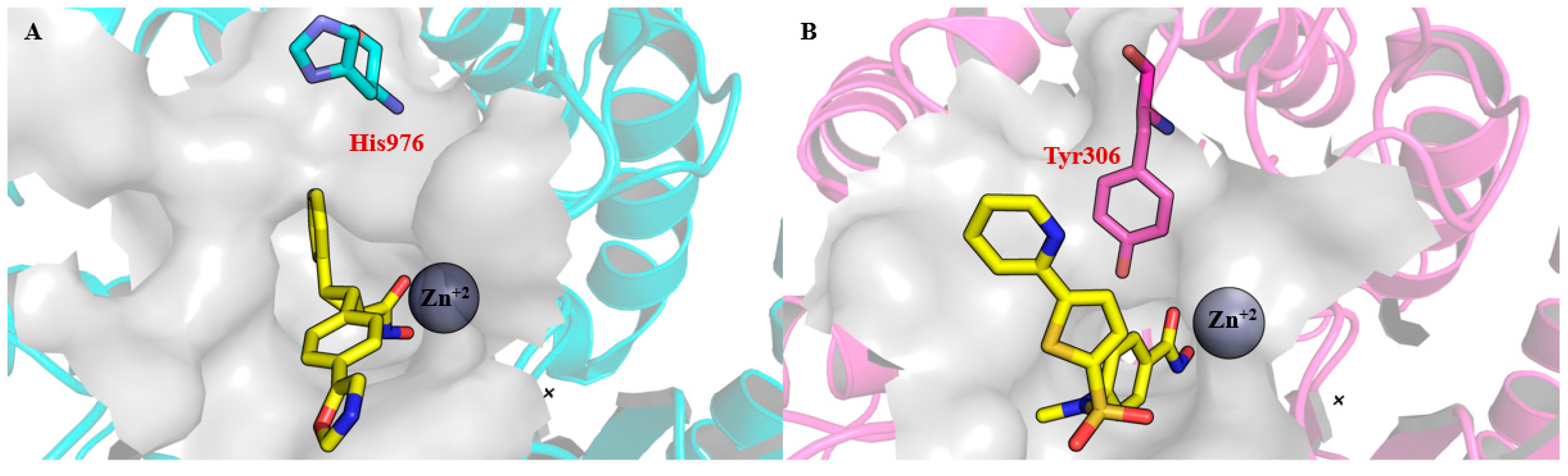 - Pinheiro, P.D.S.M.; Rodrigues, D.A.; Sant’Anna, C.M.R.; Fraga, C.A.M. Modeling Zinc-oxygen Coordination in Histone Deacetylase: A Comparison of Semiempirical Methods Performance. Int. J. Quantum Chem. 2018, 118, e25720. [Google Scholar] [CrossRef]
