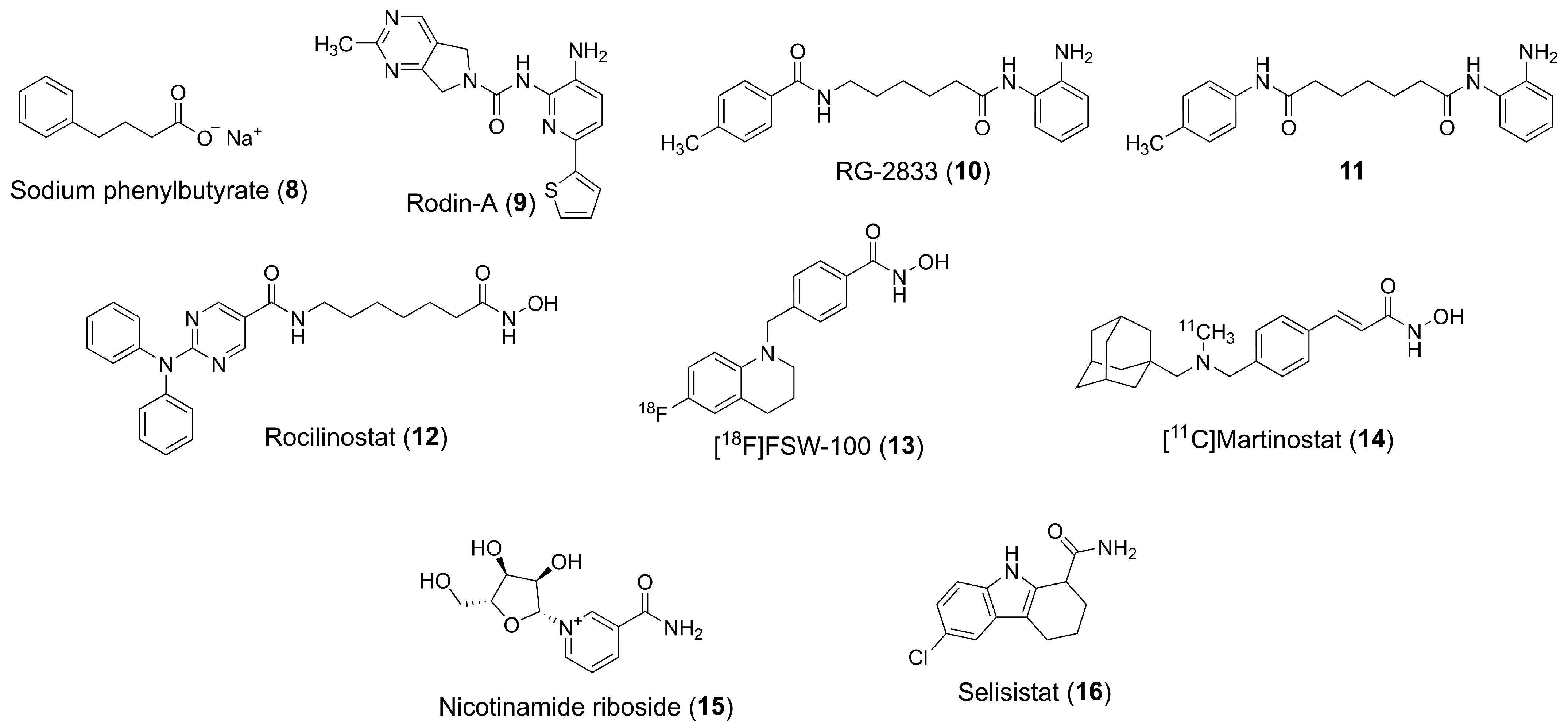 - | RG-2833 (10) | HDAC1/3 | Friedreich’s ataxia | Phase I |