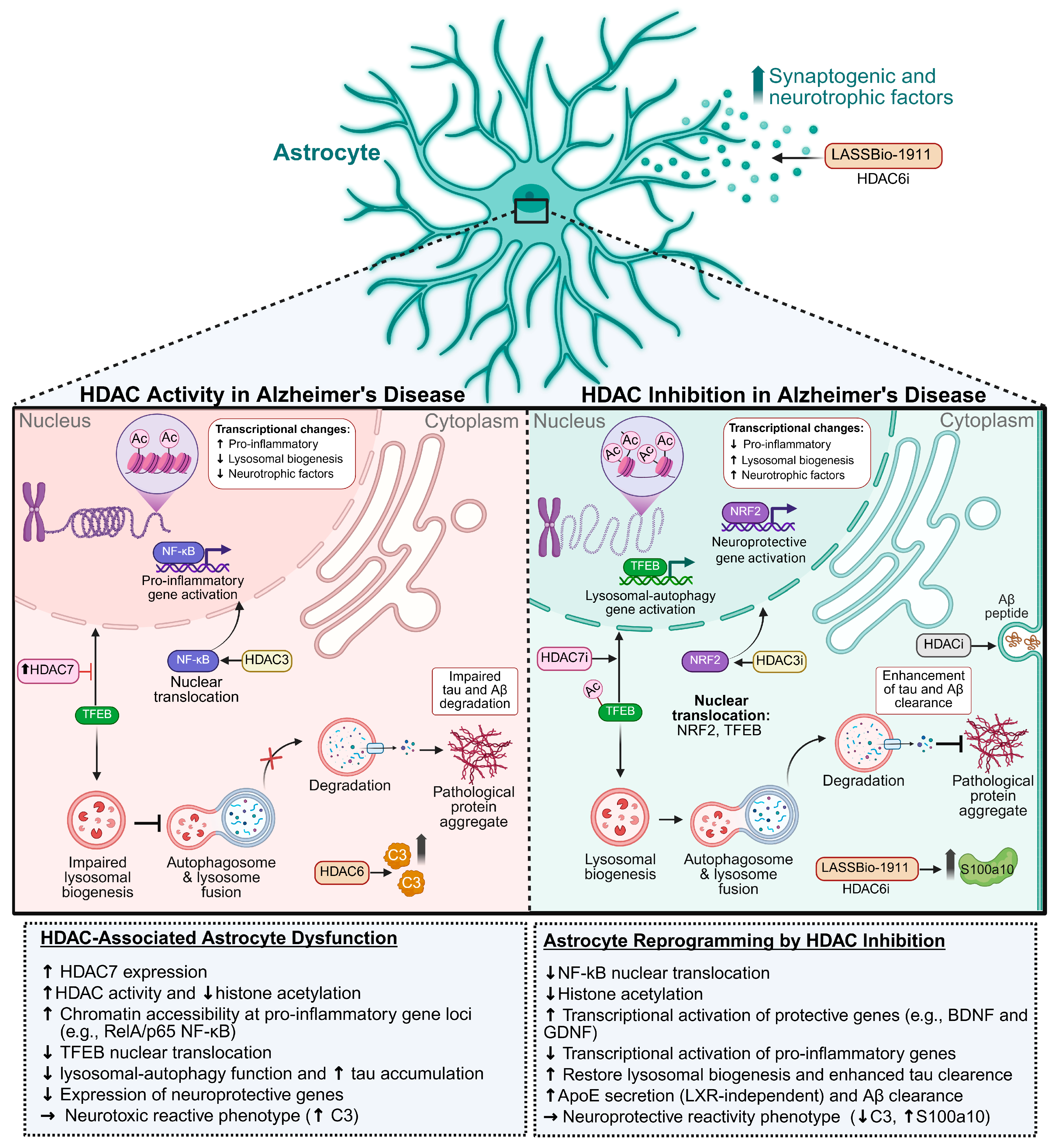 - Ye, J.; Zhong, S.; Wan, H.; Guo, X.; Yao, X.; Liu, Q.; Chen, L.; Wang, J.-Z.; Xiao, S. Upregulated Astrocyte HDAC7 Induces Alzheimer-like Tau Pathologies via Deacetylating Transcription Factor-EB and Inhibiting Lysosome Biogenesis. Mol. Neurodegener. 2025, 20, 5. [Google Scholar] [CrossRef]