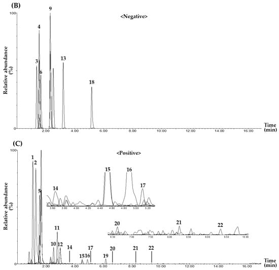 2.2. MRM Conditions for Simultaneous Determination of 22 Marker Compounds