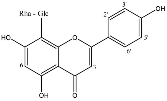 The canonical Simplified Molecular Input Line Entry System (SMILES): [CC5OC(OC1C(O)C(O)C(CO)OC1c3c(O)cc(O)c4c(=O)cc(c2ccc(O)cc2)oc34)C(O)C(O)C5O] of vitexin 2″-O-rhamnoside was used as input to generate in silico toxicity predictions on the ProTox II server (https://tox-new.charite.de/protox_II, accessed on 12 January 2025), and the LD50 values were estimated according to the literature [65].