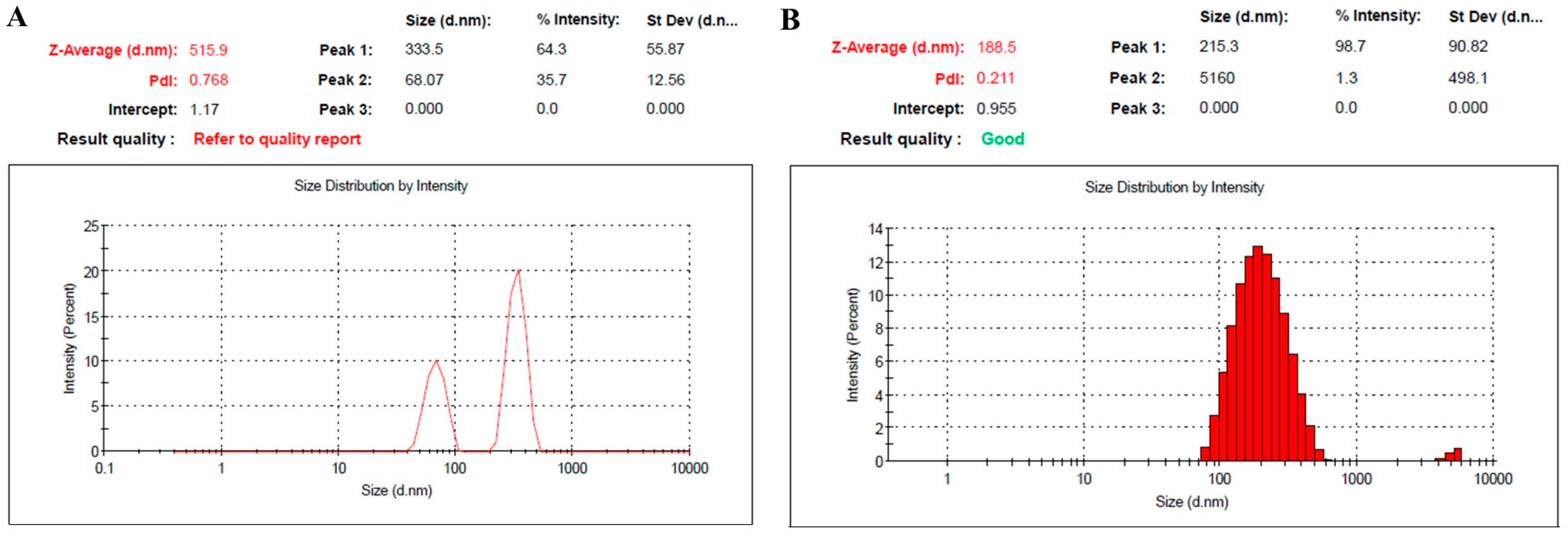 2.1.1. Assessment of Particle Size, Size Distribution and Zeta Potential