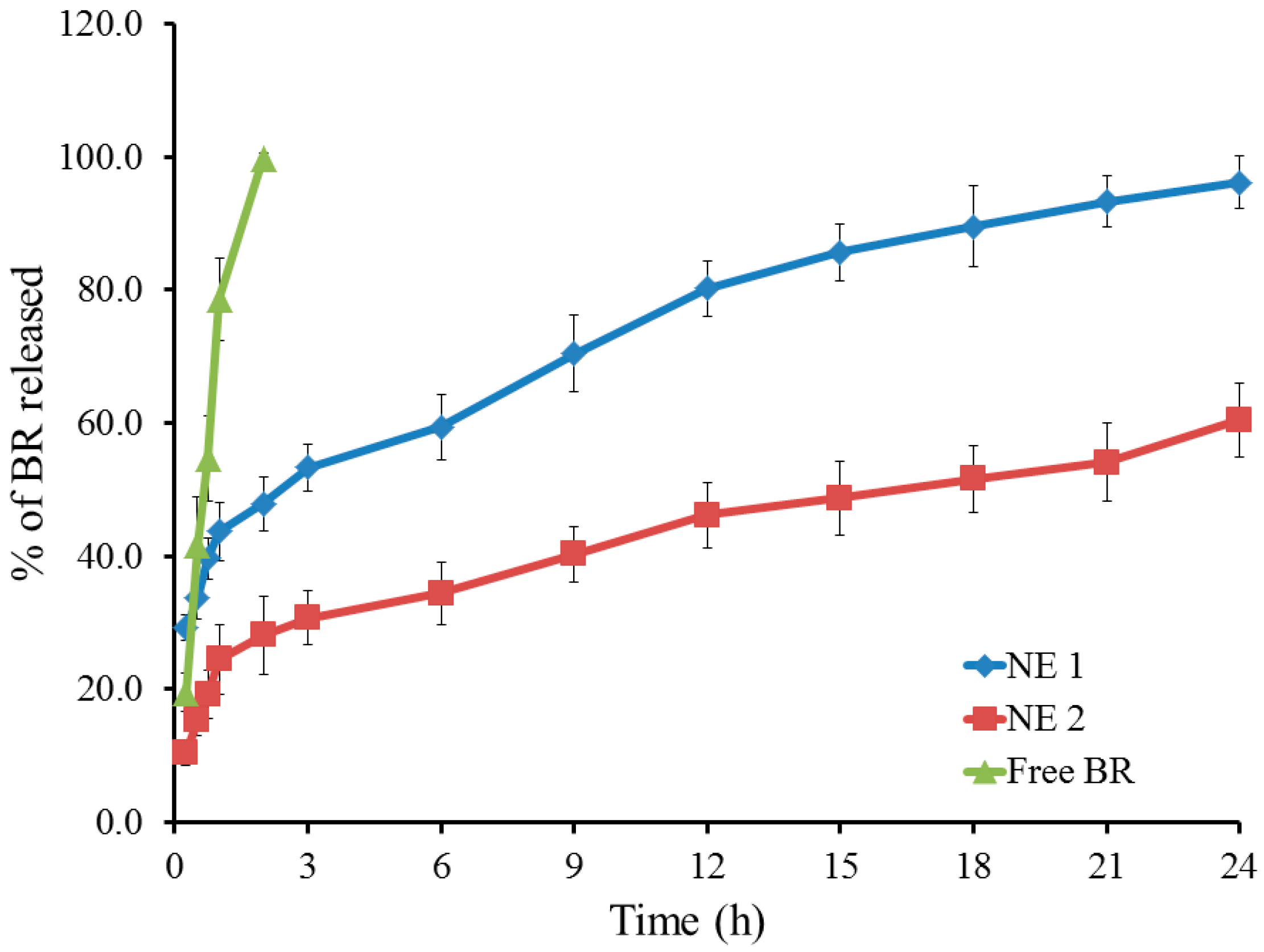 3.5. Studying In Vitro Release of BR from the Developed NE