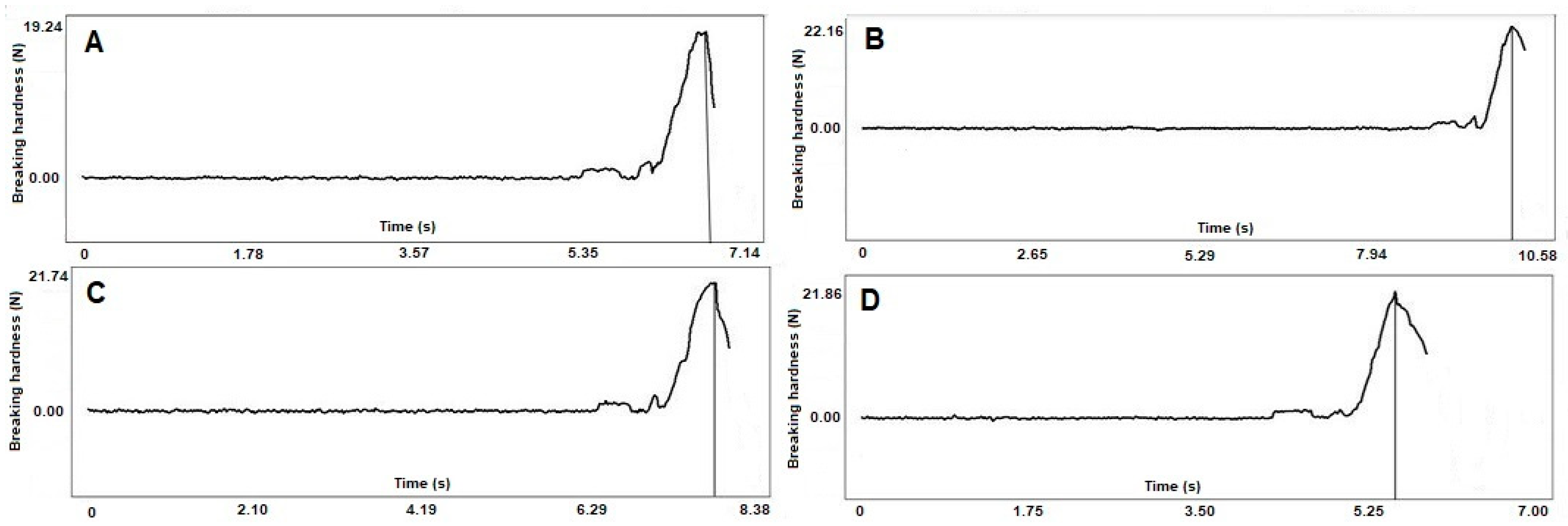 Samples | Diameter (mm) | Breaking Hardness (N) |